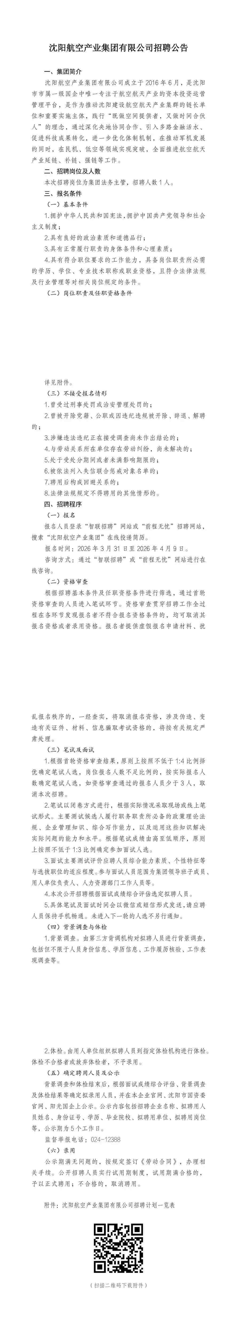 沈陽航空產(chǎn)業(yè)集團(tuán)有限公司所屬子企業(yè)招聘公告