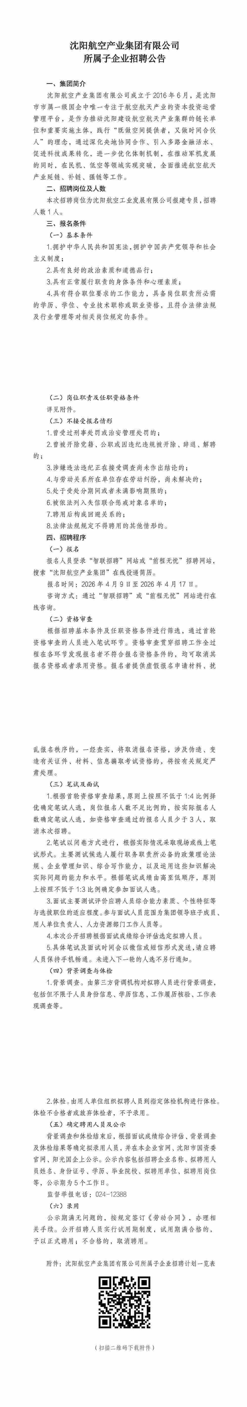 沈陽航空產(chǎn)業(yè)集團(tuán)有限公司招聘公告